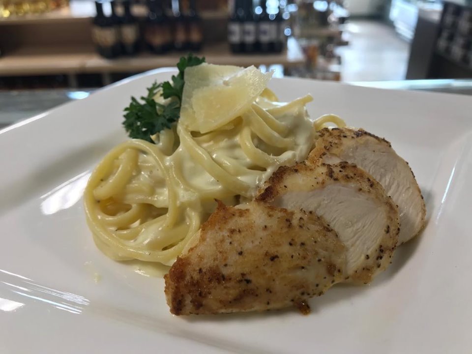 tagliatele, poulet, crème, vin blanc, beurre, farine, parmesan, échalotes, épices, sel et poivre